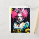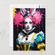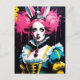 Imaginando a Alicia como el Conejo con fantasía de pelo rosa AI generó arte en los colores rosa, azul, amarillo, negro y blanco con mantas de tinta.