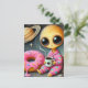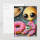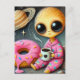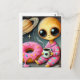 Un extraño gracioso con una rociada rosada y con Js rosados en el espacio con un café
