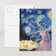 Postal Alienígena Azul Vestido Rosa Come Huevos Fritos Fa