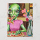 Postal Alienígena en Pizza Comer Rosa con una base de flo