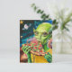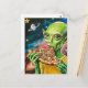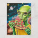 Postal Alienígena gracioso en Pizza espacial comiendo