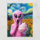 Un alien gritando es un alienígena rosa al que se le ofrece un dulce de algodón en un campo de girasol, un arte falso generado por Van Gogh AI