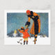 Una madre y un niño vintage están alimentando a los pájaros en la nieve