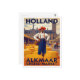 A stunning vintage-style travel poster featuring the iconic Alkmaar Cheese Market in Holland. This vibrant design showcases a traditionally dressed figure standing among large wheels of cheese, with the beautiful architecture of the Waag (weigh house) in the background. Perfect for travel enthusiasts, fans of Dutch culture, foodies, or anyone collecting retro-style art. Send it to a friend, or frame it as a unique piece of wall art!