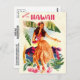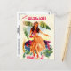 Vista tropical de un chica que baila la hula en medio de una bahía y montañas. La forma perfecta de decir "Hola" desde las islas.
