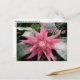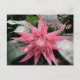 Postal de flores tropicales - esta bromeliada tiene hojas verde plateado que forman un jarrón para la flor rosa variada. Fotografiado en Hawaii.