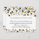 Elegante diseño de tarjeta de alojamiento para bodas con confeti de estrellas Purpurina de plata dorada, nombres personalizados y texto de fecha.
