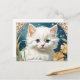 Postal con gatito de estilo Art Nouveau de Alphonse Mucha! Un gatito blanco y mullido con ojos azules posa con flores amarillas. ¡Un regalo para los amantes del gato y de los coleccionistas Art Nouveau!