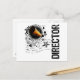 Un diseño de collage de un megáfono antiguo con "La alquimia de la dirección" y la palabra "director" con adornos -sólo para directores.