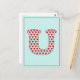 Una postal bonita y simple para decir que te amo. La carta que U esbozó en rojo con una incompleta impresión de corazones rojos impresos en un fondo verde azulado pálido.
