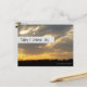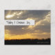 Esta postal muestra mi fotografía original. Esta puesta de sol del medio oeste tiene una silueta de árboles en el horizonte. Las hermosas nubes grises y naranjas dan paso al sol dorado, que alcanza su pico. El texto de esta tarjeta dice "Hoy elijo alegría". Puede personalizar este texto con su propia frase, nombre o ocasión especial. En la parte trasera de la postal hay una versión más pequeña de la foto de la puesta de sol junto a la dirección de retorno. También hay líneas gobernadas en la parte posterior para una dirección. Esta postal puede ser personalizada.