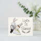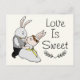 Adorable ilustracion de dos conejitas bailando en el día de su boda con el mensaje "El amor es dulce"
