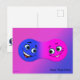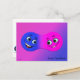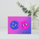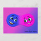 Un disco azul (masculino) y otro rosa (femenino) se unen para convertirse en una nueva entidad, una pareja. Cada disco muestra una cara sonriente que mira a la otra. La imagen está sobre un fondo rosa y azul. Puedes añadir tu propio texto y cambiar su color.