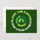 Una hermosa postal de conciencia ambiental en verde con un signo de paz y el símbolo de reciclaje a su alrededor para mostrar que necesitamos trabajar juntos para salvar el planeta. Ama la Tierra. Ama el uno al otro.