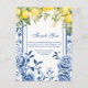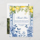 Evoque la elegancia atemporal y el encanto vibrante de una boda de color amarillo limón y azul marino con nuestra Tarjeta de Agradecimiento de Boda Amarillo Limón y Azul Marino. Este diseño encantador presenta un borde floral Chinoiserie azul marino adornado con limones amarillos pintados al estilo acuarela, flores de limón y ramas de hojas de limón, creando una fusión impresionante de sofisticación clásica y capricho soleado.