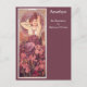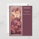 Una postal de arte fino con un ilustracion Art Nouveau de Alphonse Mucha (1860-1939), titulada Amethyst. Una mujer con el pelo largo sobre un fondo morado con iris rosados en primer plano. La colección de piedras preciosas de Mucha incluye Topaz, Ruby, Amethyst y Emerald. La serie es conocida por sus cualidades típicas de Mucha: hermosas mujeres con gestos sugerentes, uso decorativo de flores, pelo flotante y colores sutiles pero llamativos. Estos elementos se combinan para crear una armonía atractiva destinada a inspirar y elevar al espectador.