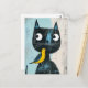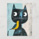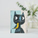Postal Amigable cómico gato negro con pájaro amarillo