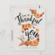 Esta tarjeta postal de Acción de Gracias presenta un diseño otoñal lindo con calabazas naranjas, hojas amarillas, salvia y marrones, y palabras dulces llenas de gratitud en caligrafía moderna manuscrita negra: "Estoy muy agradecido por ti". El nombre en la parte delantera y el texto en la parte trasera son personalizables. Es una forma sincera y reflexiva de mostrar gratitud a sus seres queridos. ¡Pida la suya ahora para un mensaje perfecto de amor y agradecimiento con tema de otoño!