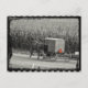 En la parte delantera de esta postal hay un caballo y un buggy Amish en los tiempos modernos.