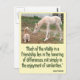 Un joven cremello Tennessee Walking foal encuentra un compañero de colores comparables en un gato de granero. Foto de Maggie Moore de Citadel Photographic.com. La cita dice "Las diferencias entre amigos no pueden sino reforzar su amistad".