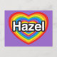 Un objeto de afecto. Amo a Hazel. Te amo, Hazel. Una tarjeta de San Valentín para Hazel, feliz cumpleaños Hazel, o un sentimiento diario. Personalizado, personalizado/personalizable. Un corazón arco iris de Hazel.