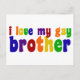 Apoya a tu hermano gay con esta postal arcoiris para una hermana solidaria. Ten algo de orgullo por tu familia. Me Encanta Mi Postal De Hermano Gay.