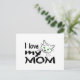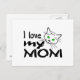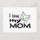 Amo el texto de mi mamá y un dibujo de un gato gracioso con ojos verdes. Productos, impresiones y regalos en formato horizontal o horizontal para celebrar el Día de la Madre