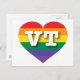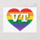 Esta postal tiene un corazón de orgullo arcoiris sobre el que se encuentran las letras fuertes, blancas y mayúsculas de la VT, la abreviatura oficial de Vermont, el estado montañoso verde. Muestra tus verdaderos colores, apoya el matrimonio igualitario y celebra el orgullo gay.