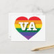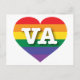 Esta postal presenta un corazón con un diseño de orgullo arco iris y las letras mayúsculas en negrita, blancas, VA, la abreviatura oficial de Virginia, el estado del viejo Dominion. El reverso de la tarjeta está en blanco, esperando el texto personalizado o los sentimientos escritos a mano. Muestra tus verdaderos colores, apoya el matrimonio igualitario y celebra el orgullo gay.