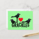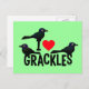 ¿Te gustan las garras? No estás solo (aunque a veces puede parecer así). A estos grandes pájaros negros les encanta reunirse y hacer ruido. Verdaderos animales fiestas, en realidad. Este bonito diseño original dice "I Love Grackles" y presenta imágenes personalizados de las variedades Common, Boat-tailed y Great-tailed. Puedes personalizar este regalo. Mueve el diseño, cambia el color o estilo de fondo, agrega texto o imágenes — ¡hazlo tú mismo!