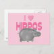 Un hipopótamo grisáceo lindo con la palabra que amo los hipopótamos escritos de rosa con un corazón rosado.
