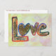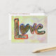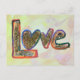 Pintura de la palabra "amor" en colores pastel del arcoiris: rojo, naranja, amarillo, verde, azul, morado. El purpurina dorado rellena la forma de la carta y proporciona textura. El fondo de la pintura se completa con una gama más ligera de pastas de acuarela suave. Personaliza esta postal de arte de palabras de amor con tu propio texto e imágenes usando el botón "Personalizar". ¡Haz tus mensajes de notas de amor, postales o invitaciones! Love Word es genial para Guardar las postales de fecha, postales Bodas, postales de compromiso, tarjetas de aniversario o tarjetas de invitación para recién nacidos.