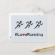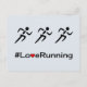 No solo disfruten corriendo: #LoveRunning! Una postal para cualquiera - un corredor de maratón, triatlón o atleta, corredor de campo cruzado, o para alguien a quien le gusta trotar para mantenerse en forma. Texto simple en negro con corazón rojo, creando un eslogan de etiqueta. Tres corredores de pictograma arriba, en un fondo azul pálido.
