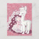 Una original pintura de fantasía en acrílico titulada: "Amor de la Alpaca". Un adorable bebé alpaca blanca con un chica elfo de pelo rosado, que lo abraza. Todo en rosa, hermoso patrón de encaje en el fondo y varios corazones de amor por la linda alpaca. Y estoy seguro de que la alpaca también ama al dulce chica elfo.
