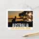 Una hermosa postal negra, blanca y dorada con una impresionante imagen de una puesta de sol que presenta (el contorno de) un canguro, un árbol y las mundialmente famosas Montañas Glass House en Queensland, Australia. La espectacular puesta de sol dorada da a la imagen un gran color. Para hacer esta tarjeta aún más especial, la foto tiene la forma del país de Abajo. ¡Envíe sus saludos a todos sus amigos y familiares! O manténgalo como un recuerdo de su inolvidable viaje por carretera por debajo. ¡Siéntase libre de personalizar la tarjeta a su gusto!