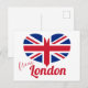 NewParkLane - Amor desde London Postcard, con una bandera en forma de corazón del Reino Unido, con "Londres" en tipografía divertida y roja.