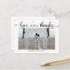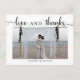 Sencilla y elegante foto de boda de moda, tarjeta de agradecimiento con texto de escritura que dice: "Amor y agradecimiento". Añade tu propia foto boda y personaliza el mensaje en la parte posterior. Diseñado por Kristine Lee Designs www.kristineleedesigns.com