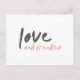 Moderno y minimalista "Amor y amistad" cita postal inspiradora en un elegante negro con un acento rosa rubor en una tipografía de estilo pintado a mano con estilo minimalista escandinavo e inspirado en la amistad, el aliento, la inspiración, la motivación y la amabilidad. Parte de la colección Love Design que incluye una amplia gama de productos con una gama de etiquetas inspiradas en el amor y complementarias. | Palabras clave relacionadas: bestial, bff, bf, best, friend, lindo, rosa, rubio, gris, gris, sombras, mutado, elegante, escandaloso, simple, magnífico, encantador, chica, femenino, mínimo, moda, tendencia, felicidad