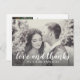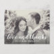 Elegante boda gracias por publicar la plantilla de la tarjeta características "amor y agradecimiento" en un tipo de letra manuscrita de moda con monograma personalizado. Incluye una foto paisajística de la novia y el novio en la parte delantera y una foto cuadrada más pequeña con texto personalizado que se puede personalizar en la parte posterior de la tarjeta. El esquema de color clásico en blanco y negro se puede personalizar completamente. Los filtros fotográficos (incluyendo B/S y sepia) también están disponibles a través de personalizar.