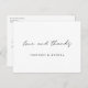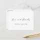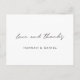 Esta simple y elegante tarjeta postal de agradecimiento boda presenta 'amor y agradecimiento' en negro en un cálido y moderno guión en letras fundas inferiores. Este elemento del diseño no se puede modificar. Puede cambiar el color, la fuente o el tamaño de cualquier otro texto. El tono predeterminado para el texto de nombres en la parte delantera es negro y el color predeterminado del texto en la parte posterior es un tono gris. Hemos puesto un ejemplo de texto en la parte posterior para que lo reemplace con su mensaje. Pero por favor no se sientan restringidos por esto. Si prefiere dejar la opción en blanco para que pueda escribir una nota manuscrita en cada tarjeta, puede hacerlo. Por favor, asegúrate de que en cualquier funda elimines nuestro ejemplo de texto. No hemos elegido un color predeterminado para el fondo en ninguno de los lados. En su lugar, el valor predeterminado es tan transparente como para permitir que el color del papel sirva simplemente como tono base. Puede cambiar esto eligiendo un color en las herramientas de edición si lo desea para uno o ambos lados. Un diseño minimalista como este pone el papel en un enfoque más agudo y te invita a agregar tus propias palabras escritas a mano en la parte de atrás, ya sean tus firmas o un mensaje también. Hemos elegido mate en lugar de semi brillo como la opción de papel predeterminada, ya que es muy adecuado para escribir tu propio mensaje y no se mancha. Pero puedes cambiar esto según tu estilo. Usa las herramientas de edición intuitivas y haz que este boda moderno y elegante sea tu única tarjeta postal con las herramientas de diseño intuitivo y tu inspiración.