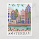 Postal Amsterdam Lakeside Town View Ilustracion de viajes