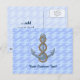 Ancla con ilustracion de cuerda sobre las olas fondo transparente azul claro sin costura. Texto personalizado.