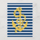 Postal Anclaje Amarillo Fondo De Rayas Azul Y Blanco
