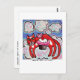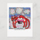 Postal de un cuadro de Cindy Pop donde aparece Angel Cat sobre nubes con un pastel.