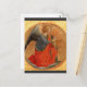 Arte cristiano fino que representa un ángel arrodillado con las manos atadas. Pintura sobre un círculo dorado del artista italiano Fra Angelico c1437.
