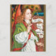 Postal inspirada en el bello y festivo ángel de Anunciación de Martin Schongauer, pintado en una de las alas exteriores del retablo Orlier, aproximadamente 1470-75. El artista se vio profundamente influenciado por el creciente culto a la Virgen María, por lo que la Anunciación fue uno de sus temas favoritos. Hay una delicadeza en los detalles de la imagen, similar a la que se encuentra en la obra más famosa del artista, la Madonna del Rosa Bower. El cuadro muestra al ángel Gabriel sosteniendo una pancarta con las palabras de Anunciación (Ave Maria, plena, Dominus tecum), las alas del ángel parecen estar hechas de plumas de pavo real. La escena tiene lugar antes de un trapo de honor, rojo con intrincados detalles dorados.