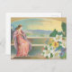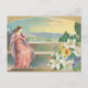 Un ángel estudia un paisaje con lirios de Pascua. El texto dice "Que seas una feliz Pascua". Esta fue originalmente una tarjeta de Pascua de 1910. Cortesía de la colección de tarjetas de vacaciones de dominio público de la Biblioteca Pública de Nueva York.
