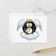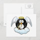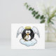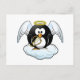 Esta es una foto de un pingüino de ángel personalizado. El pingüino sostiene un arpa, tiene alas de ángel y un halo.
