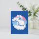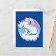 Un rinoceronte blanco con alas de ángel, sentado en la nube en el cielo. Diseño gráfico de la Conciencia de la Conservación del Rinoceronte en Postcard.