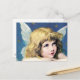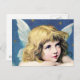 Un ángel de aspecto adorable y dulce se ve estrellada mientras descansa. Hay un cielo azul en el fondo lleno de estrellas.
